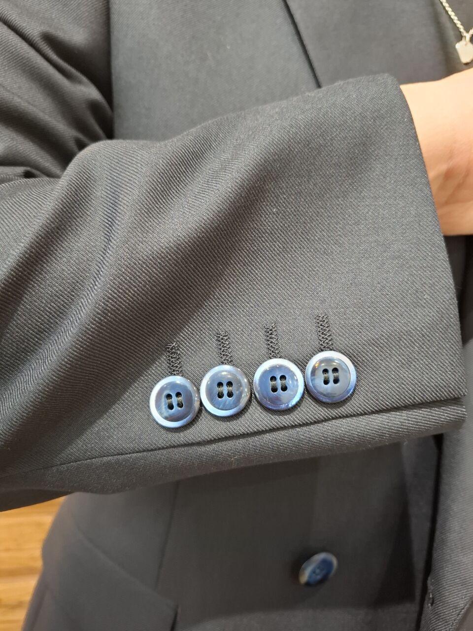 色付き釦がアクセントのネイビーダブルスーツ T.I様 オーダースーツSADA 札幌駅前通店 投稿日 2026年3月10日 最終更新日 2026年3月10日 こんにちは!札幌駅前通店です(*^-^*) 本日もお客様の素敵なスーツをご紹介いたします。 ダブルスーツ 生地素材 ウール50%ポリエステル50% ネイビー無地 秋冬生地 7-5502 裏地 キュプラ100% バイオレット ペイズリー柄 SU-650 ボタン テーラード釦 イタリア製 ネイビー F-5 オプションその他 担当スタイリスト 今井