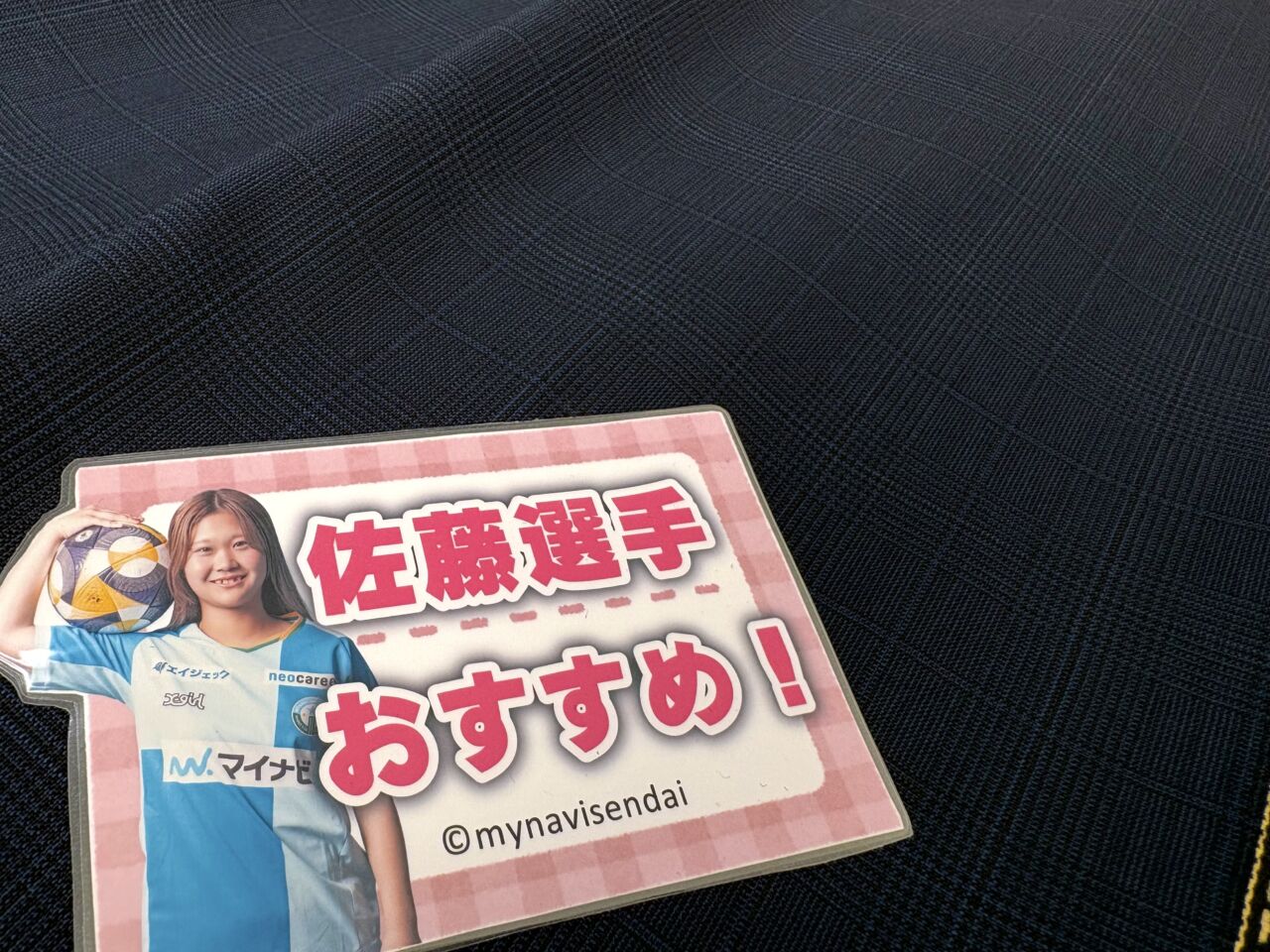 【マイナビ仙台レディース】佐藤選手おすすめ生地② オーダースーツSADA 仙台泉店 投稿日 2026年4月30日 NEW! 最終更新日 2026年4月14日 こんにちは、仙台泉店です! . 本日は、マイナビ仙台レディース佐藤選手 おすすめ生地第二弾です。 . . 吉岡選手おすすめ生地②と色柄がよく似ていますが 佐藤選手が選んだ生地の方が濃い目の色味です。 . 生地の特徴としては ウール100%のナチュラルストレッチ素材です。 . チェック柄が初めての方にも チャレンジしやすい色柄となっています。 . 素材:ウール100% 生地番号:7-2552 価格:上下60,280円(税込)