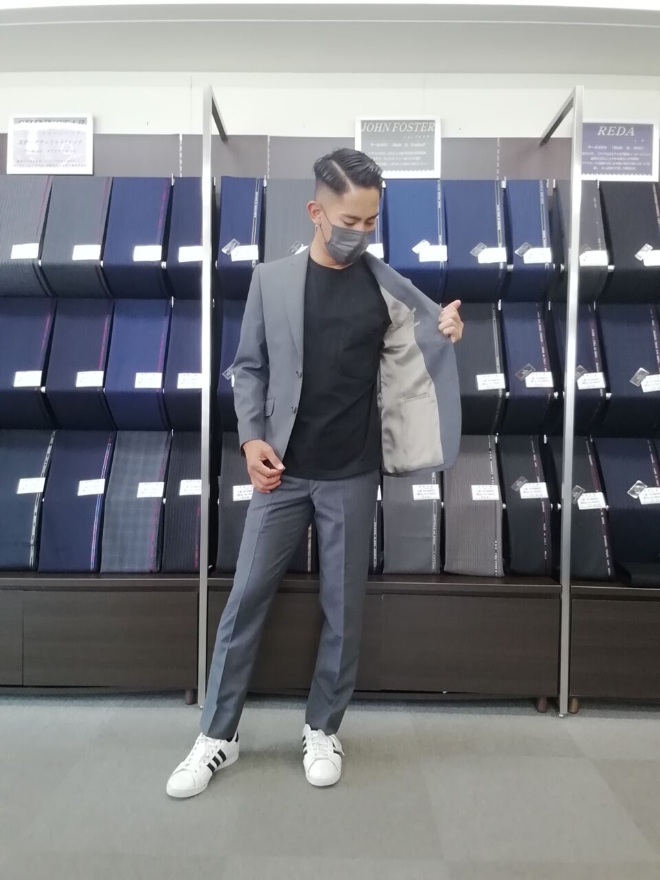 全体的に細身のシルエットにしている為スタイルが良く見えとてもお似合いです。