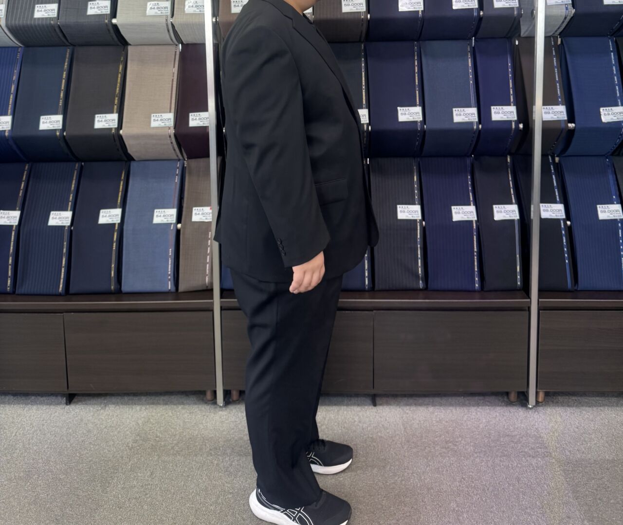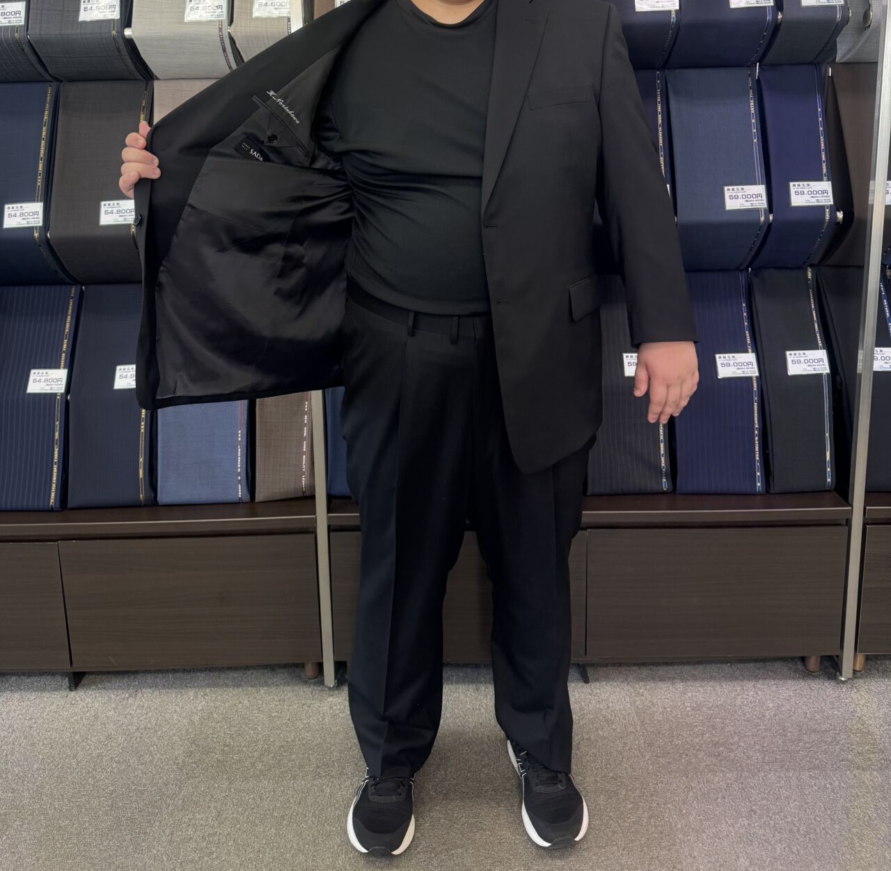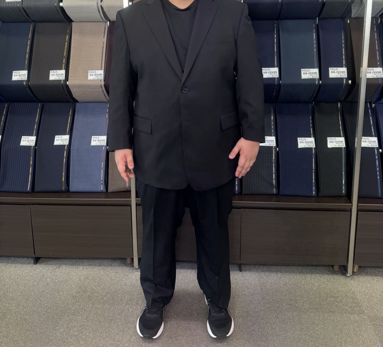 引き締まる印象のブラックスーツ