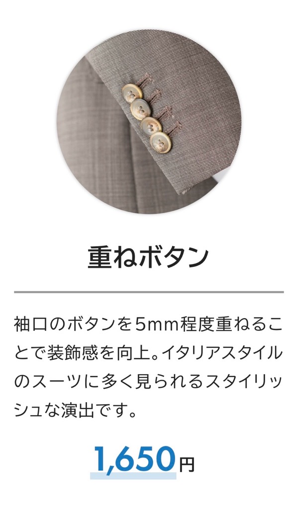 ボタン同士の隙間がなくなるので、手元をスッキリさせつつ、立体感で寂しくならない。このバランスを保てるのがオーダー感ポイント!