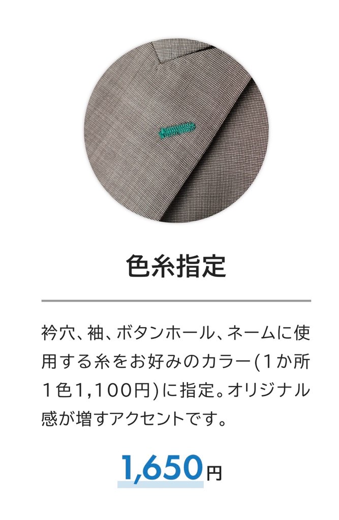 衿穴、袖口のボタンホール、ネーム刺繍など様々な部分の縫い糸の色をご指定いただけるOPです!