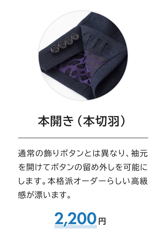 ボタンを一つ外しておくだけでオーダー感をアピールできるので、さりげなくオーダーらしさを出したい方にオススメのOPです!