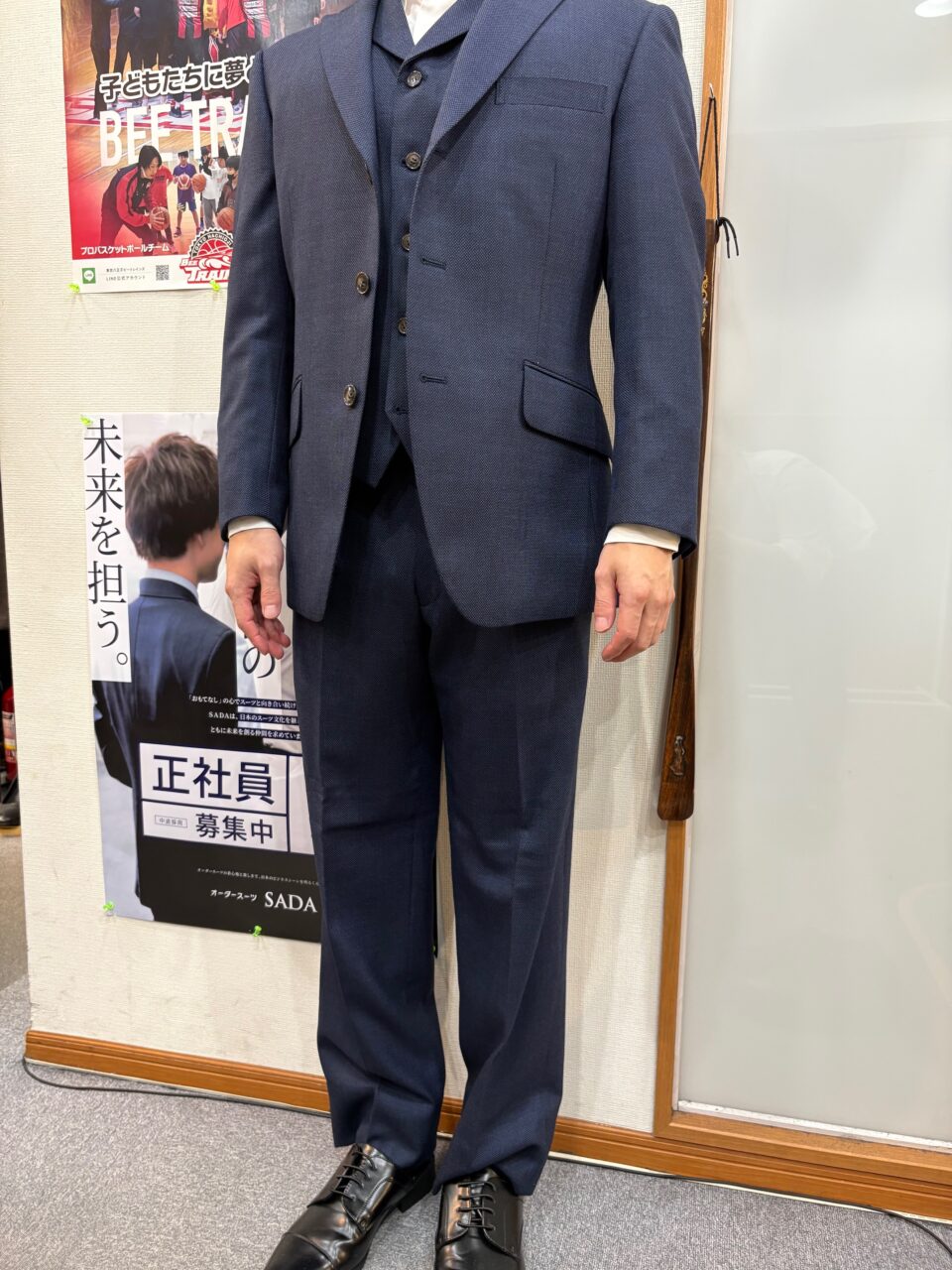 青味のある紺の『バーズアイ』でお作りいただきました!!