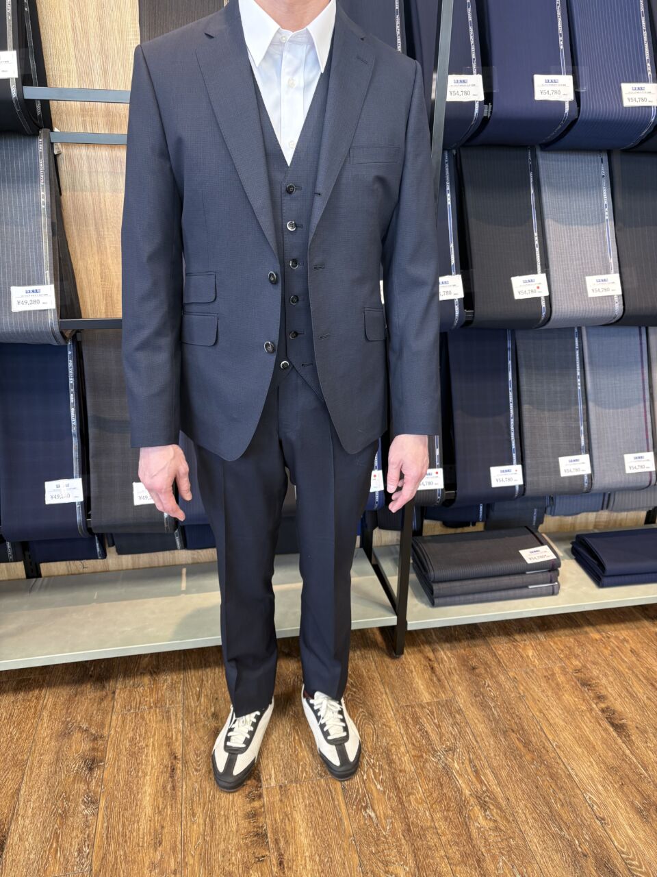 紺/チェックの生地でお仕立ていただきました。 T.M様/40代/男性 オーダースーツSADA 宇都宮大通り店 投稿日 2026年4月27日 NEW! 最終更新日 2026年3月15日 3釦段返り スリーピーススーツ 生地素材 春夏生地 ウール100% S26148 紺 チェック 裏地 ポリエステル60% キュプラ40% SU731 ボタン F-2 オプションその他 担当スタイリスト 大平