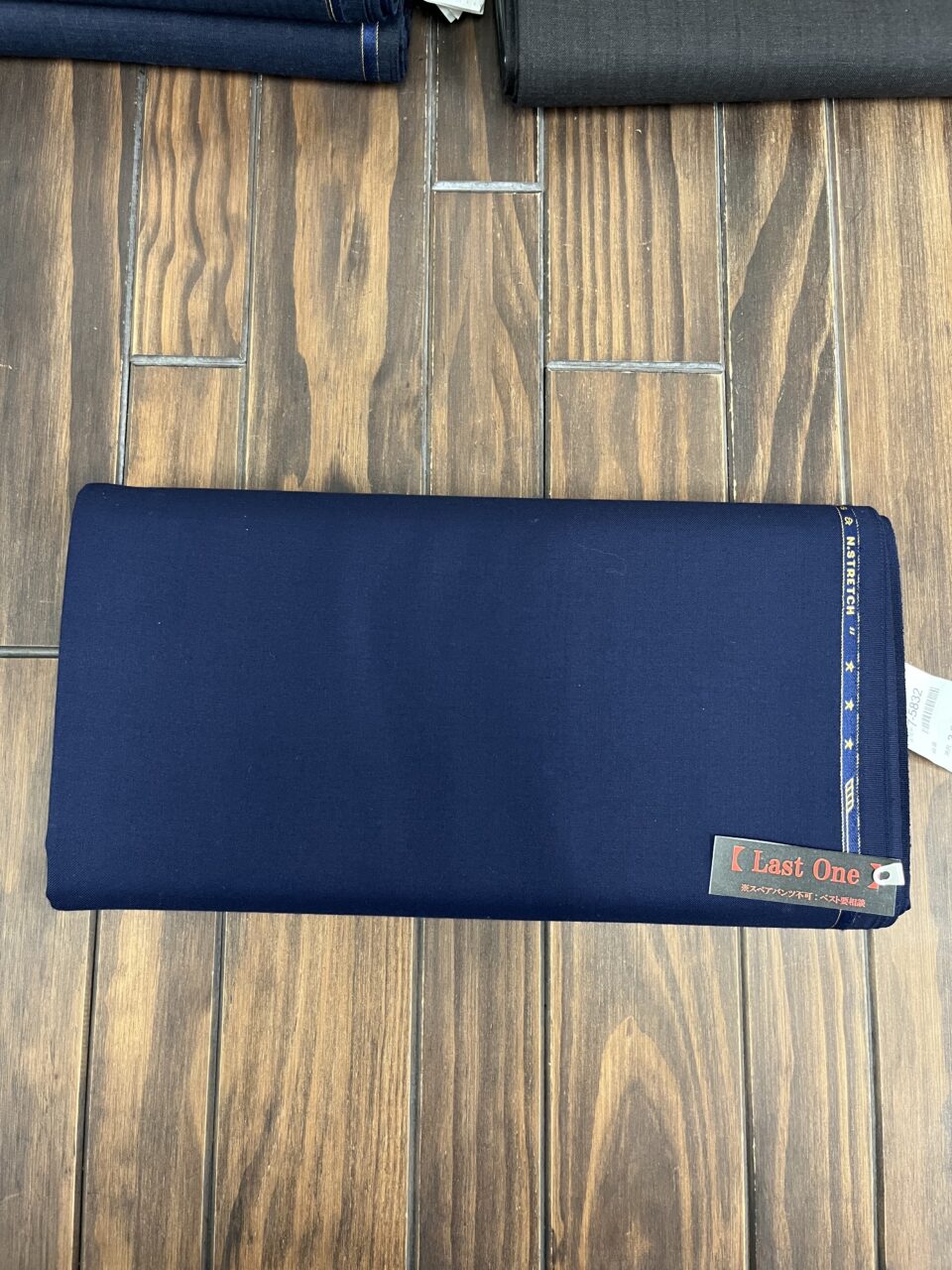 こちらは紺無地の生地となっております。どんな場面でも使いやすいですし光沢感が特徴的ですので仕立て映えもする生地となっております。